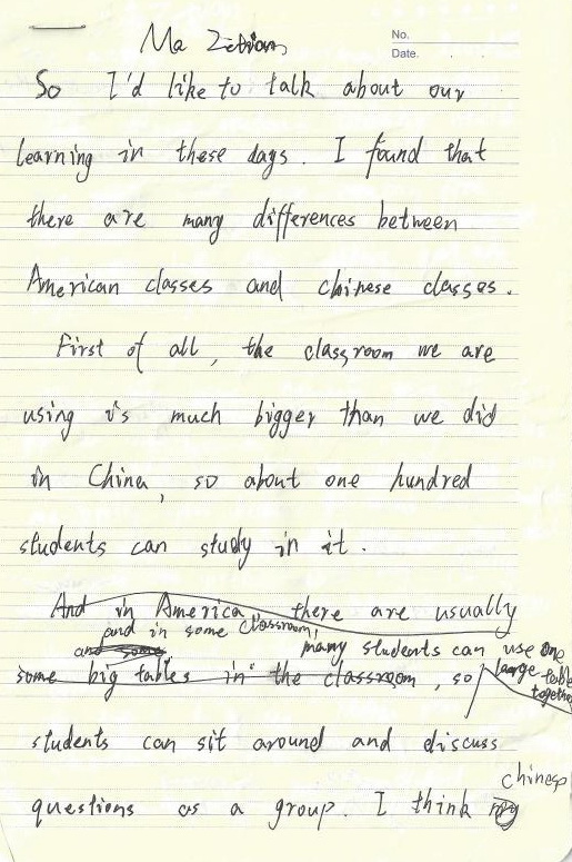So I’d like to talk about our learning in these days. I found that there are many differences between American classes and Chinese classes.
