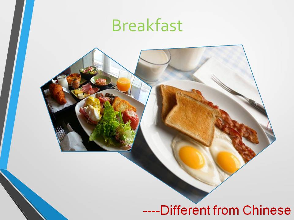 For breakfast, I believe that western food is better than Chinese. The biggest difference between them is that there’s always meat in western’s but few in Chinese. The tomatoes in western breakfast are also good.