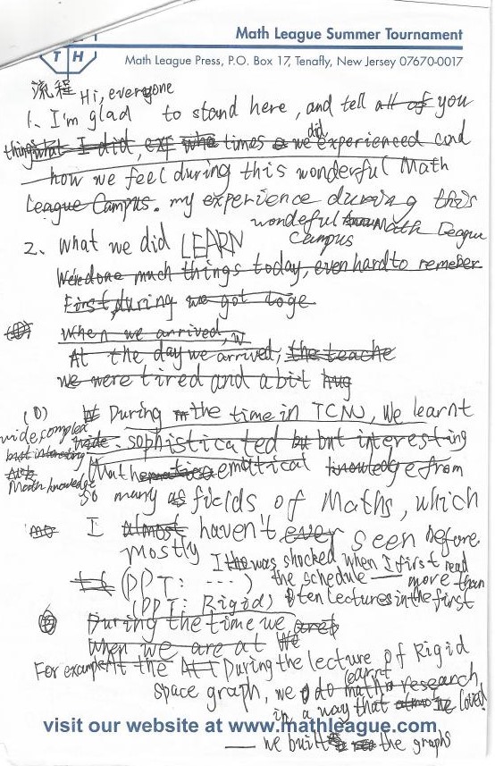 In Math League, the test is different from China. Some test we can talk with others, but in China we can’t. I think it is funny, but in China is boring. Thank you!